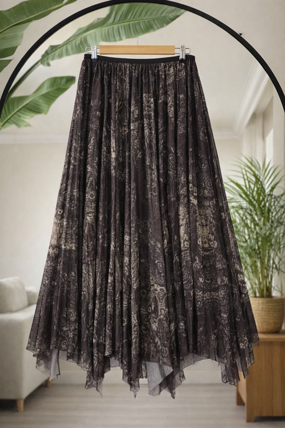 Asimetrik Kesim Astarlı şifon Etek Kahverengi SG2061