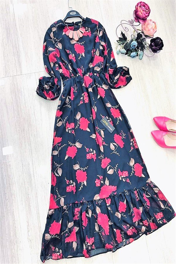 astarlı şifon elbise Elbise Siyah ums652
