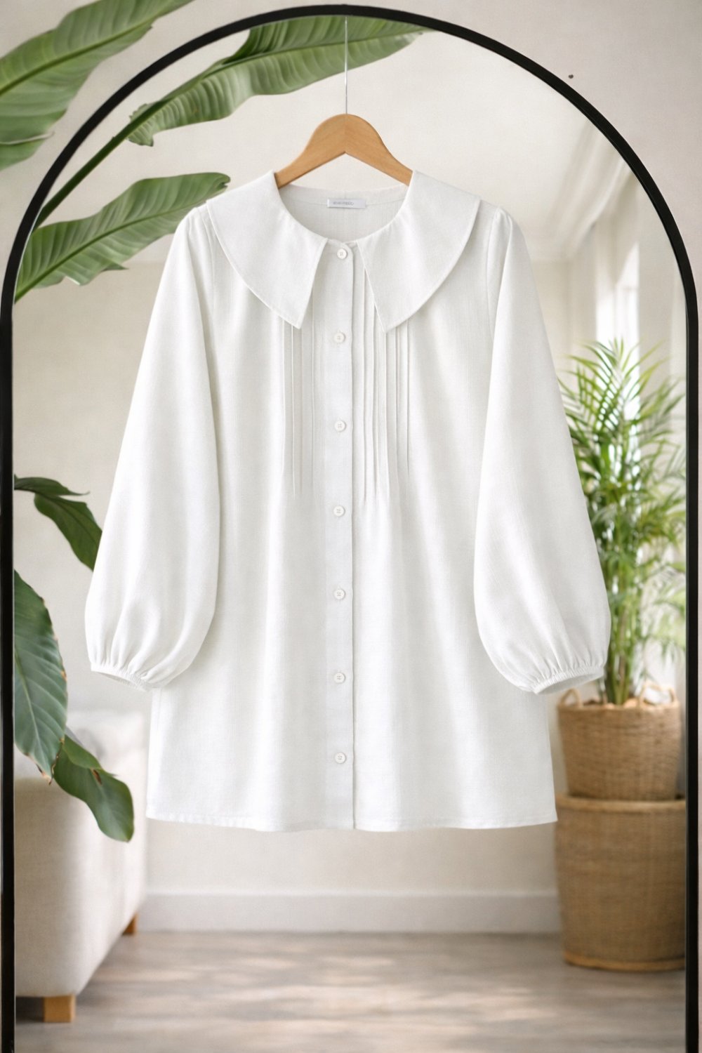 Balık yaka önü Dikiş Detaylı tunik Beyaz BK9545