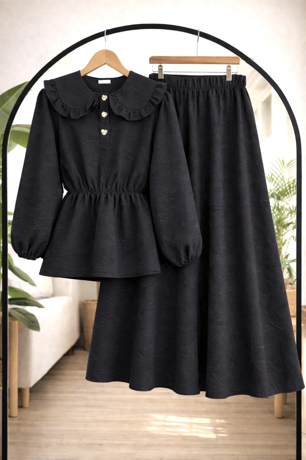 Bebe yaka Bel lastikli etekli Takım Siyah NW8098