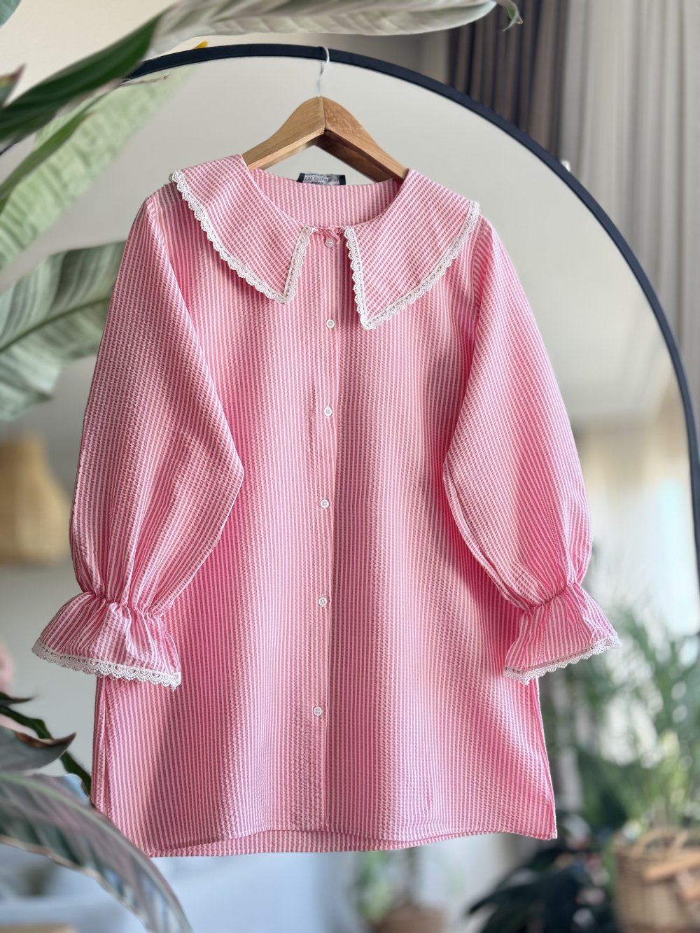 Bu ürün: Bebe yaka dantel detaylı Tunik pembe NEW30290
