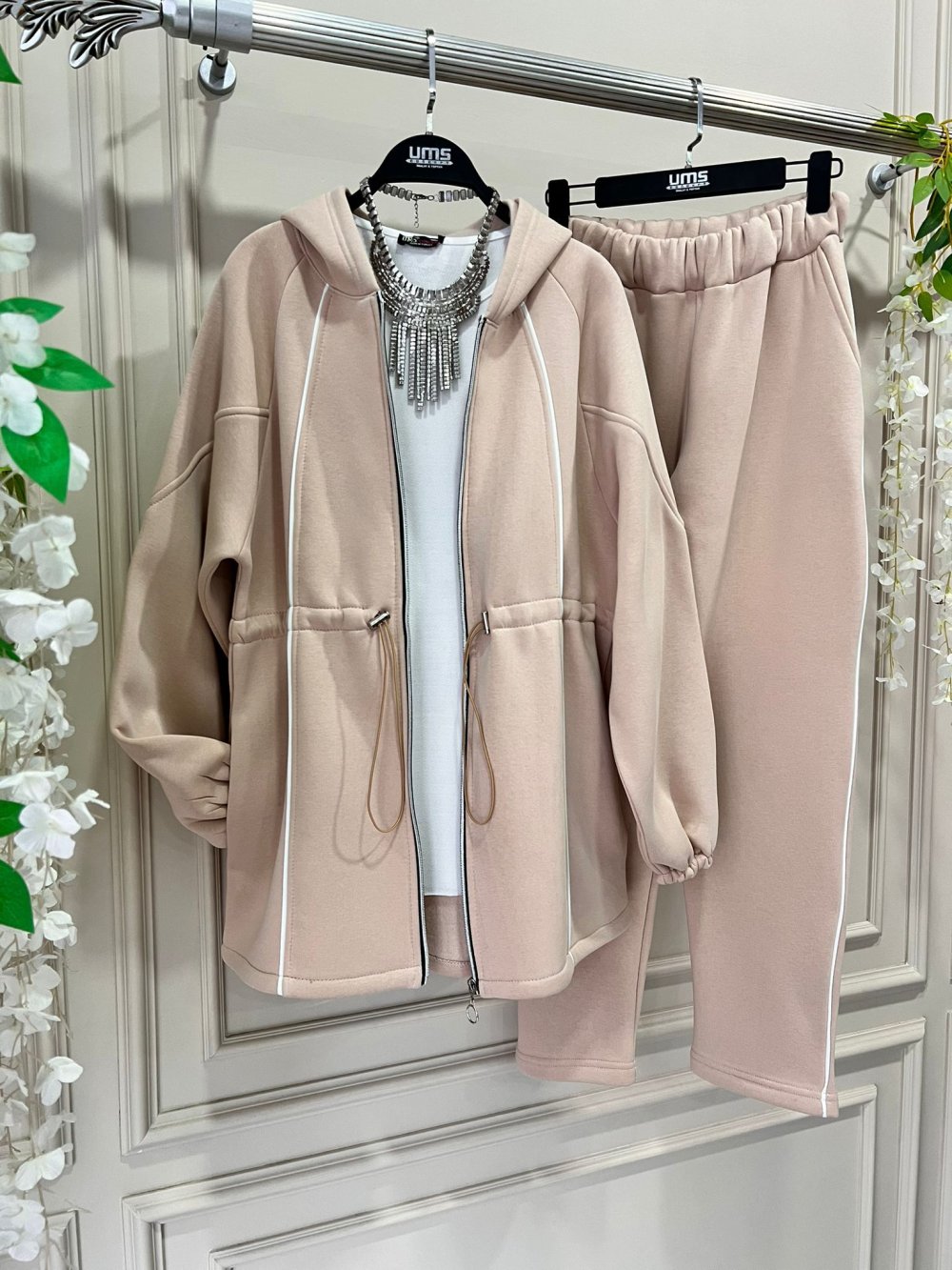 Beyaz Dikişli Üçiplik İkili Takım Bej UMD50121