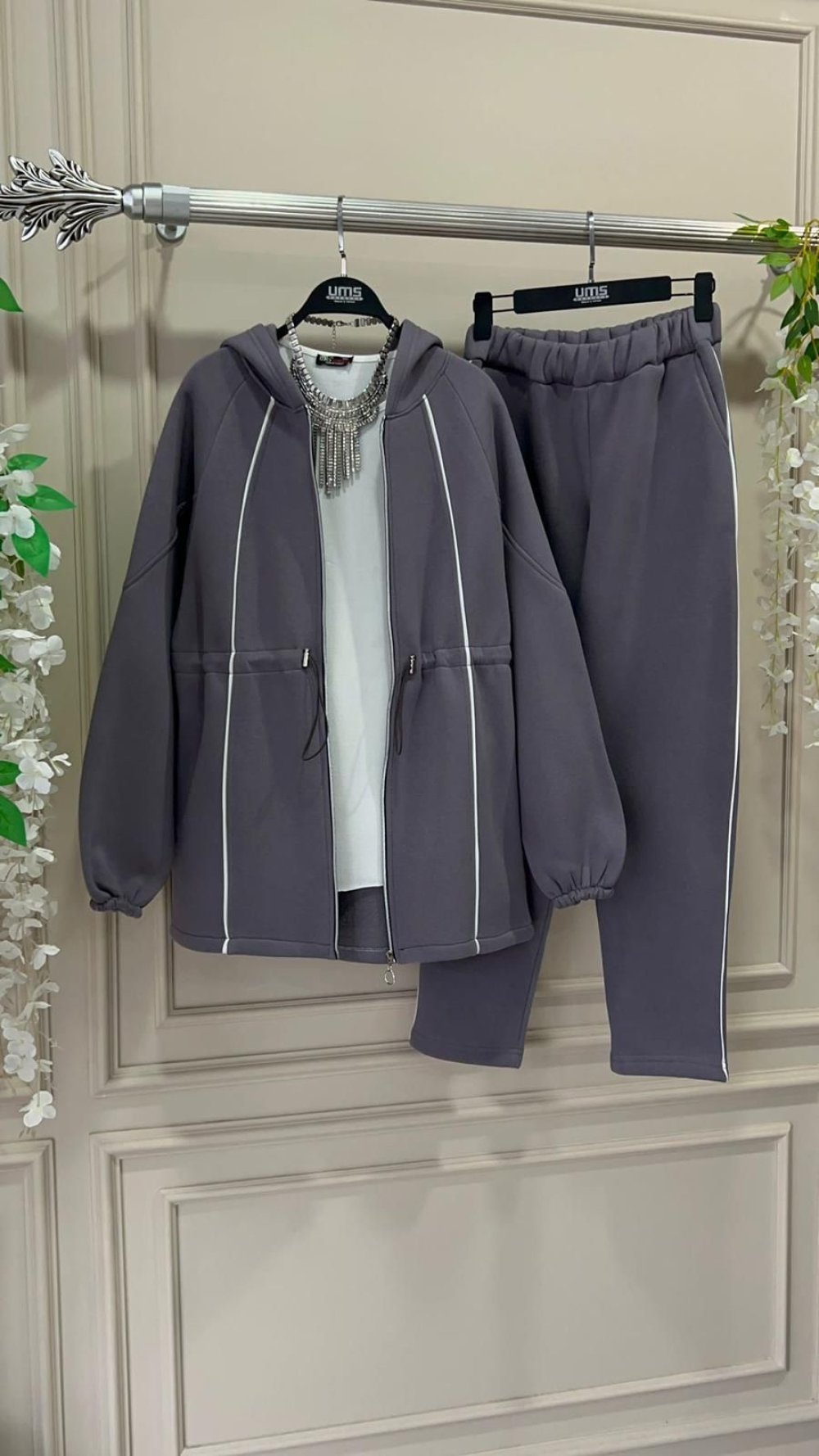 Beyaz Dikişli Üçiplik İkili Takım Gri UMD50121