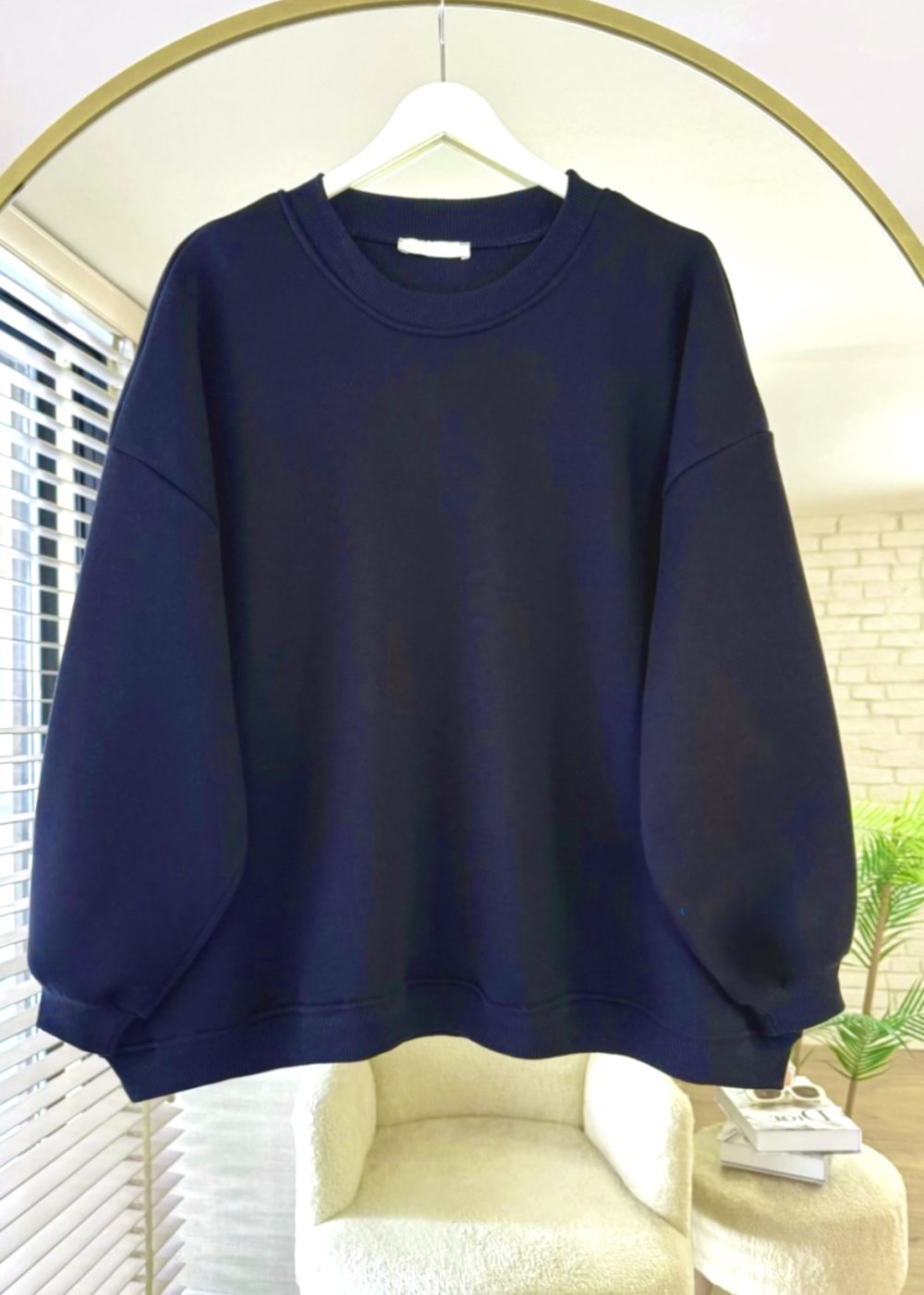 Bisiklet Yaka Oversize Sweatshirt Lacivert DS2058