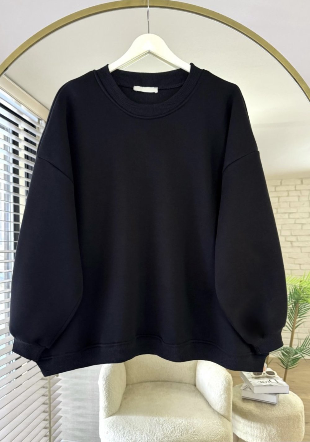 Bisiklet Yaka Oversize Sweatshirt Siyah DS2058