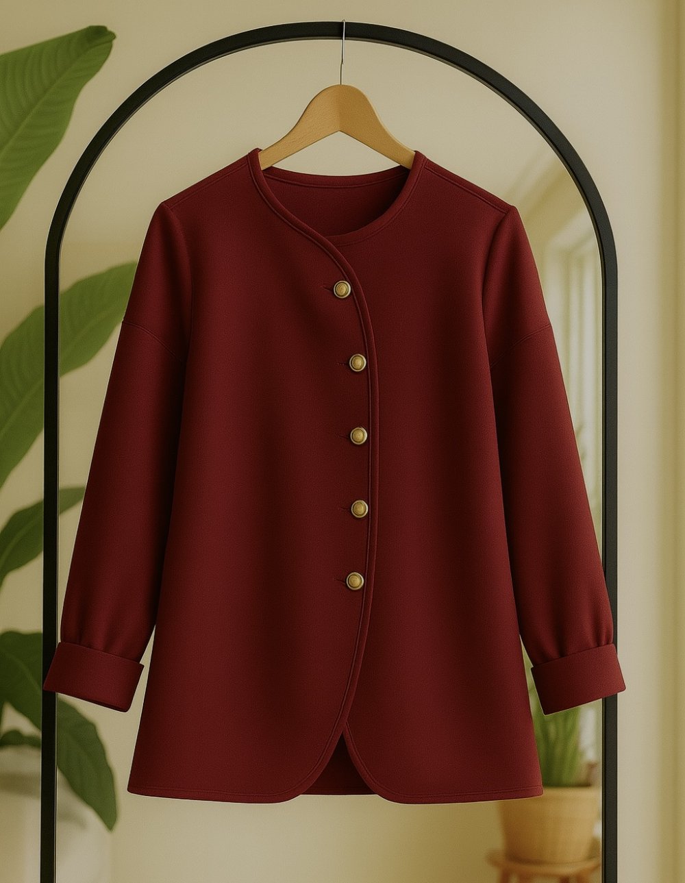 Capraz Düğmeli bel bağcıklı Tunik Bordo BK9530