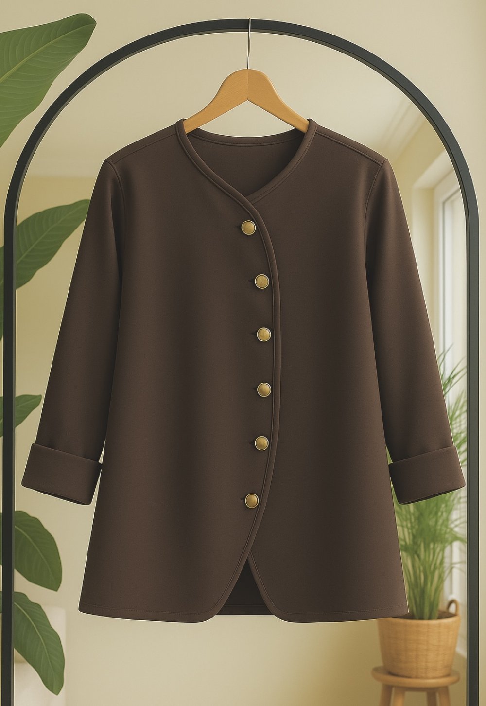 Capraz Düğmeli bel bağcıklı Tunik Kahverengi BK9530