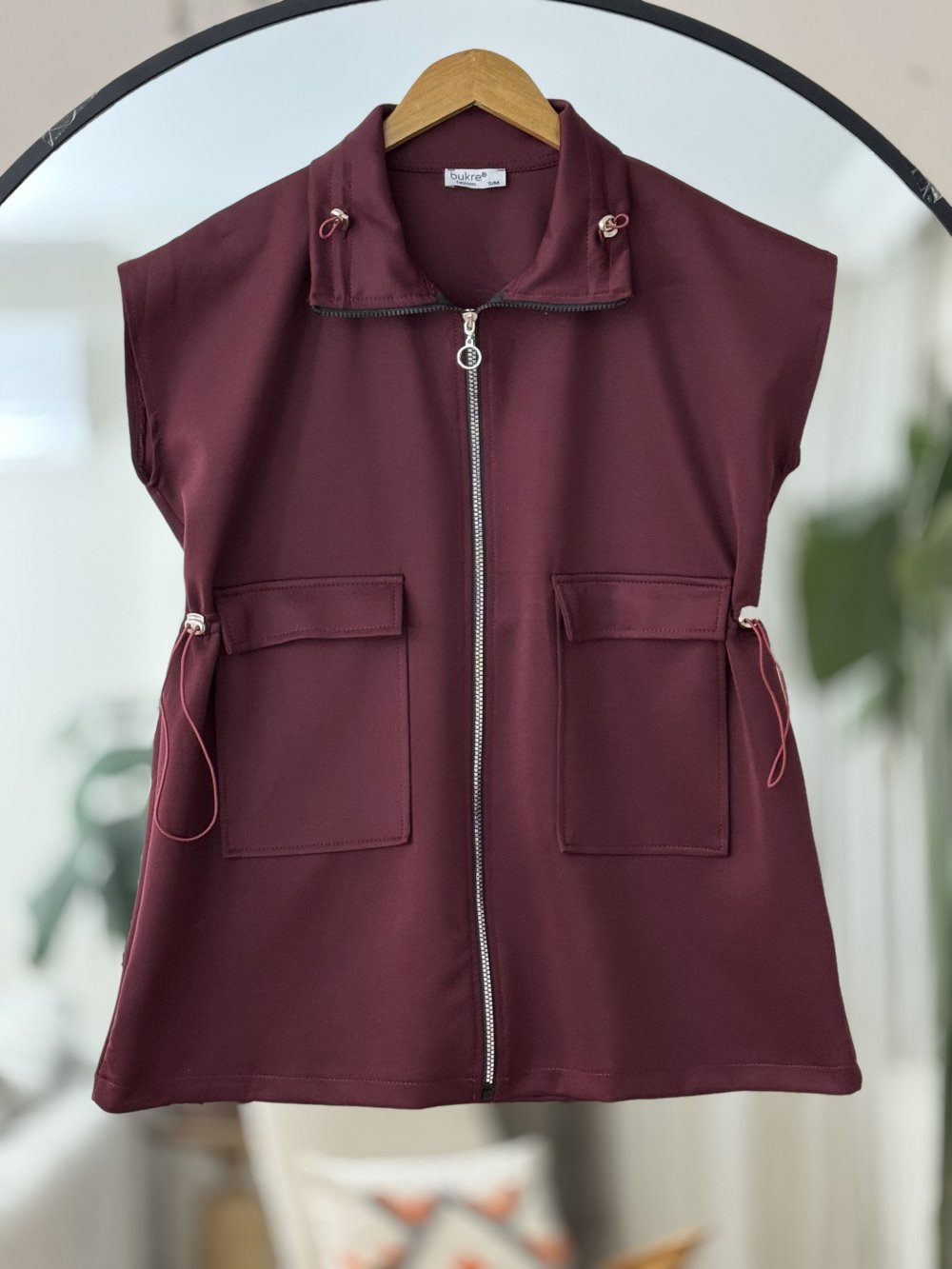 Cepli fermuarlı scuba yelek Bordo BK9518