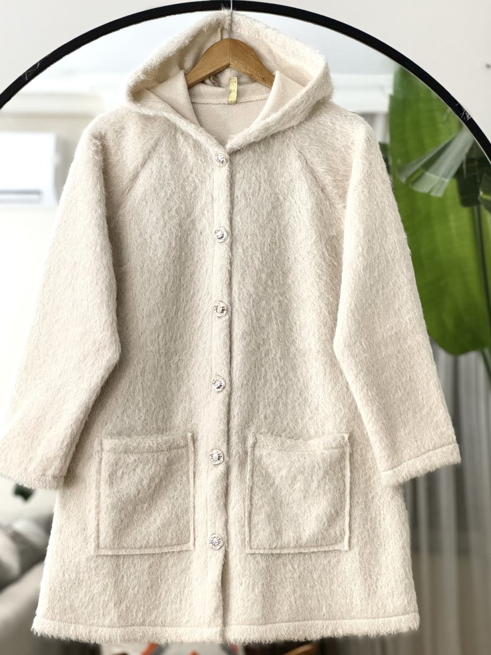 Cepli kapşonlu önü düğmeli kap Ekru TB8031