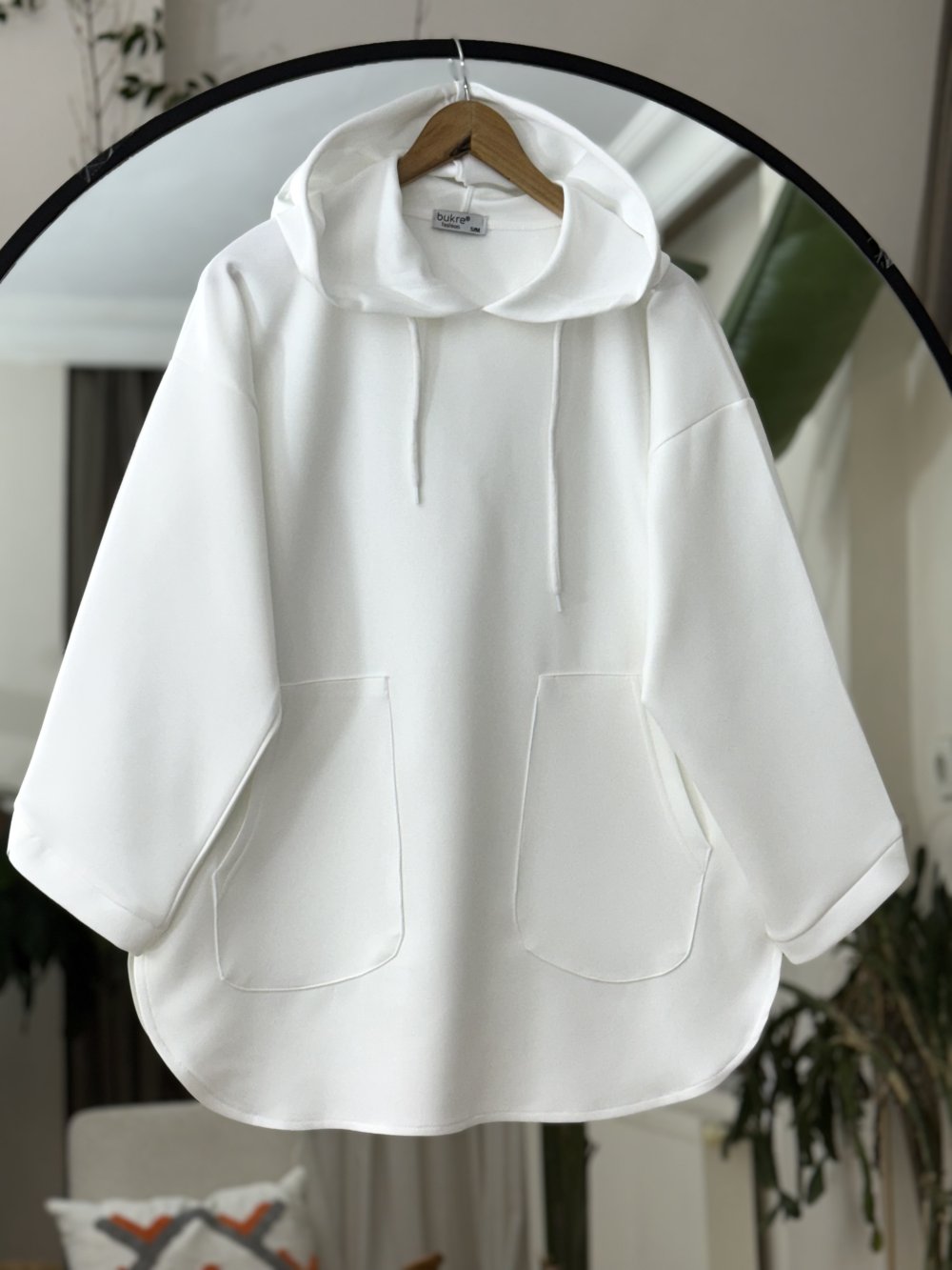Cepli Kapşonlu Tunik Beyaz BK9013