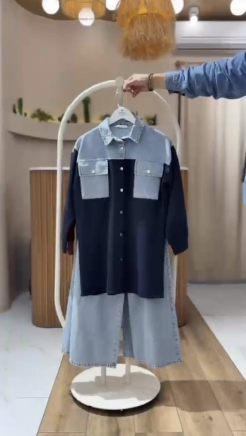 Cepli Kumaş detaylı Kot takım Lacivert YR30552