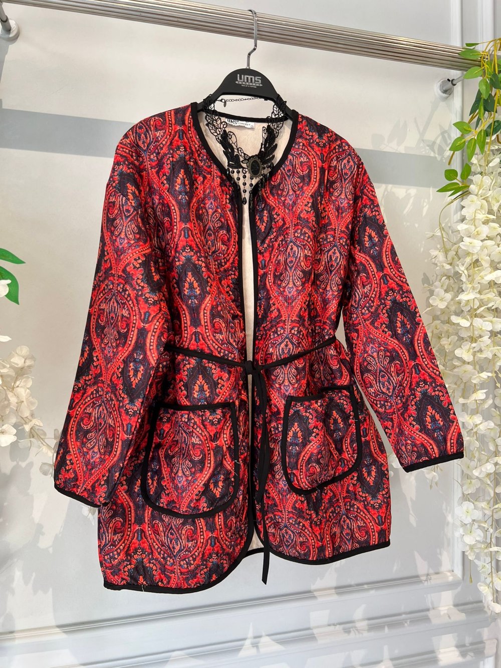 Cepli Kuşaklı Desenli Kapitone ceket hırka Bordo UMS50317