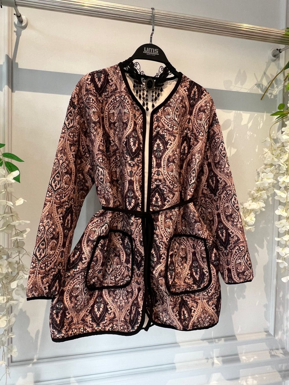 Cepli Kuşaklı Desenli Kapitone ceket Kahve UMS50317