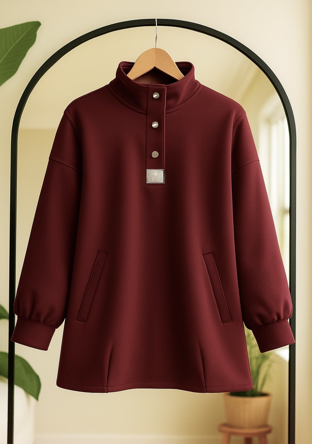 Cepli Yaka çıt çıtlı taşlı tunik Bordo BK9529