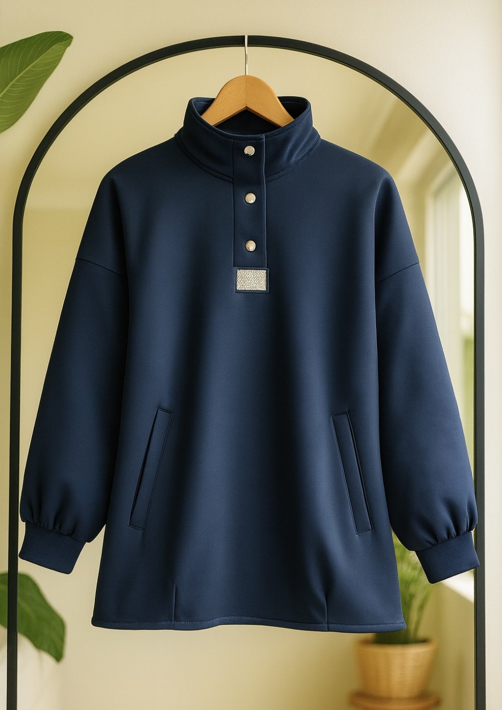 Cepli Yaka çıt çıtlı taşlı tunik Lacıvert BK9529