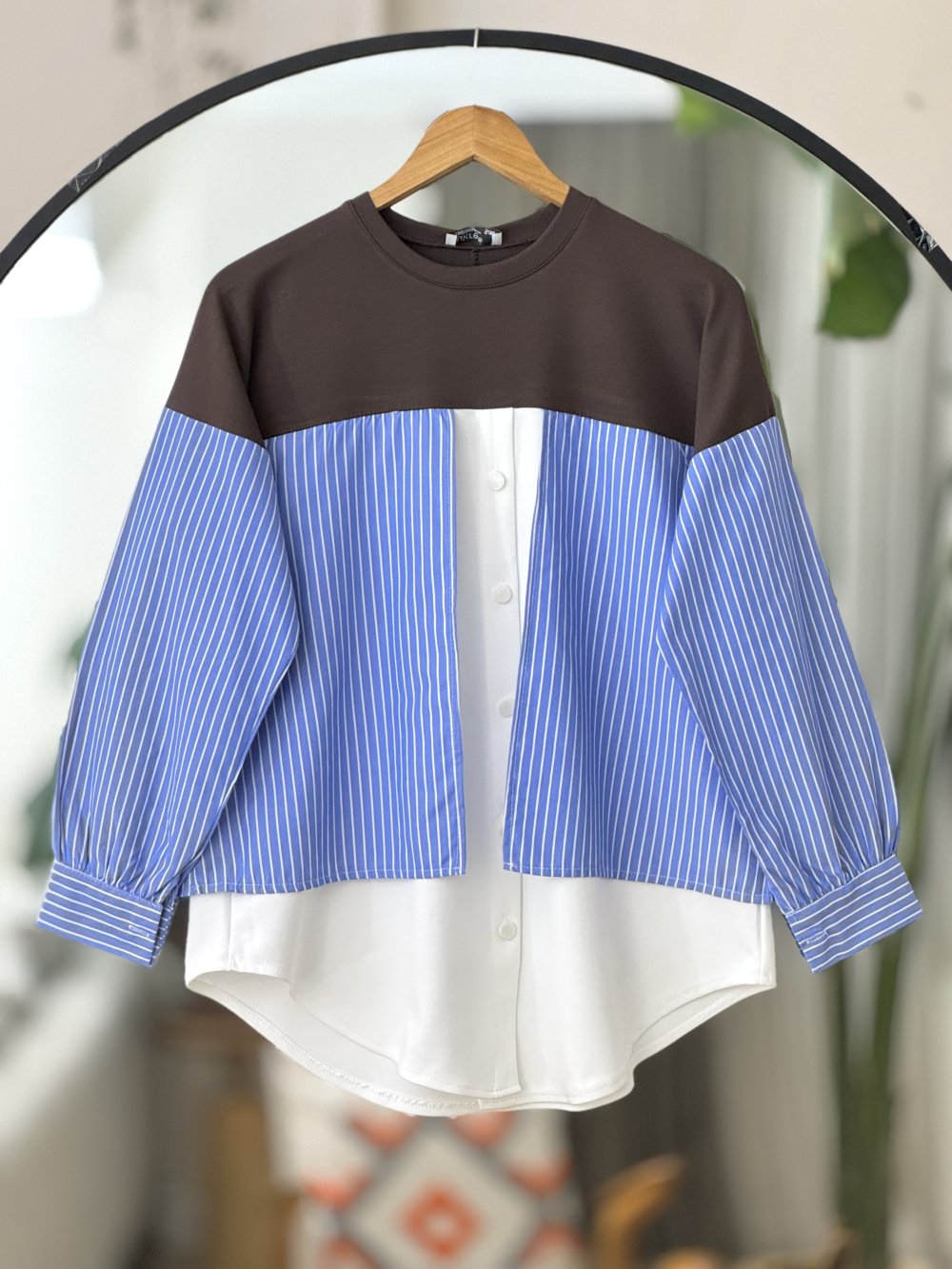 Çizgili gömlek Detaylı Tunik Kahve BK9515