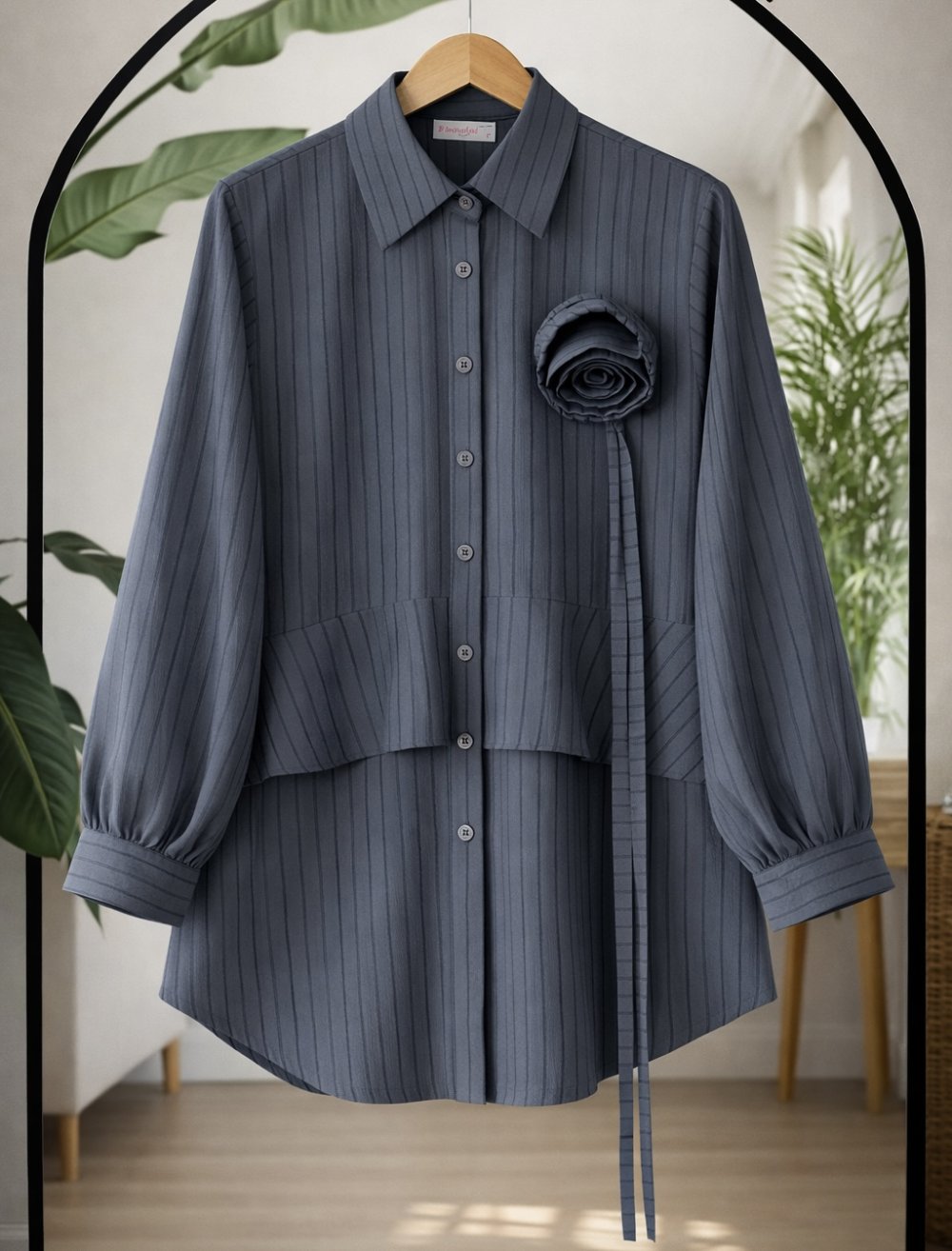 Çizgili gül kuşak Detaylı Tunik Antrasit BK9067