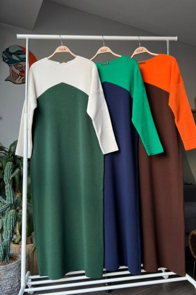 Kuşaklı terikoton kumaş elbise Turuncu UMS1519