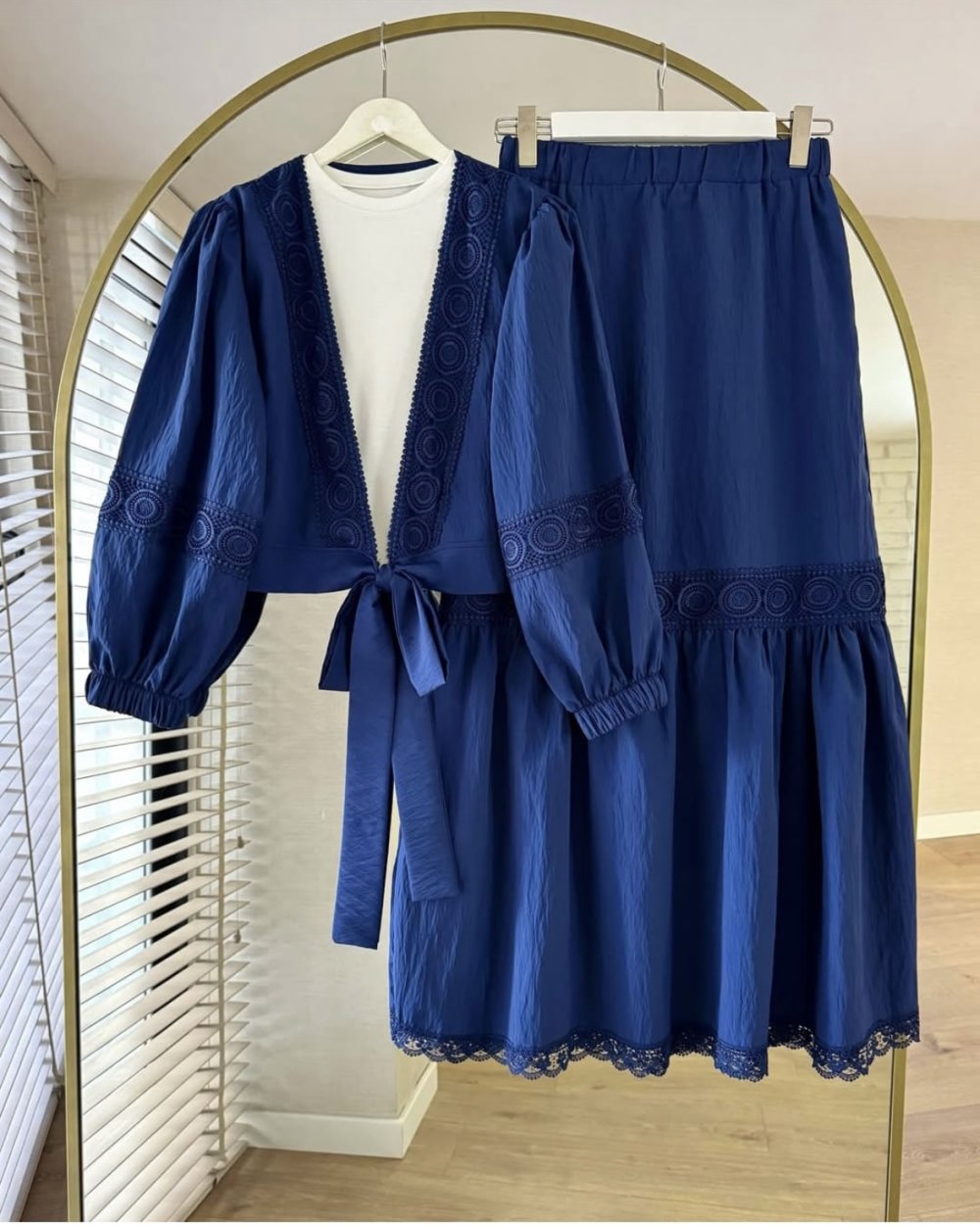 Dantel detaylı Etek blüz Takım İndigo TCN40105