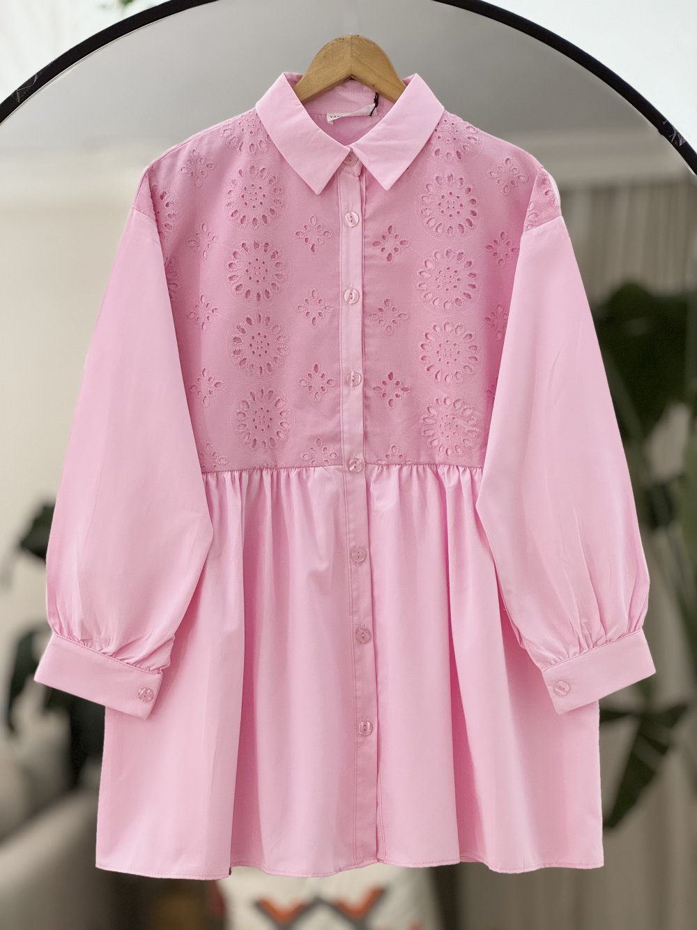 Dantel Detaylı Tunik Gömlek Pembe YR30539