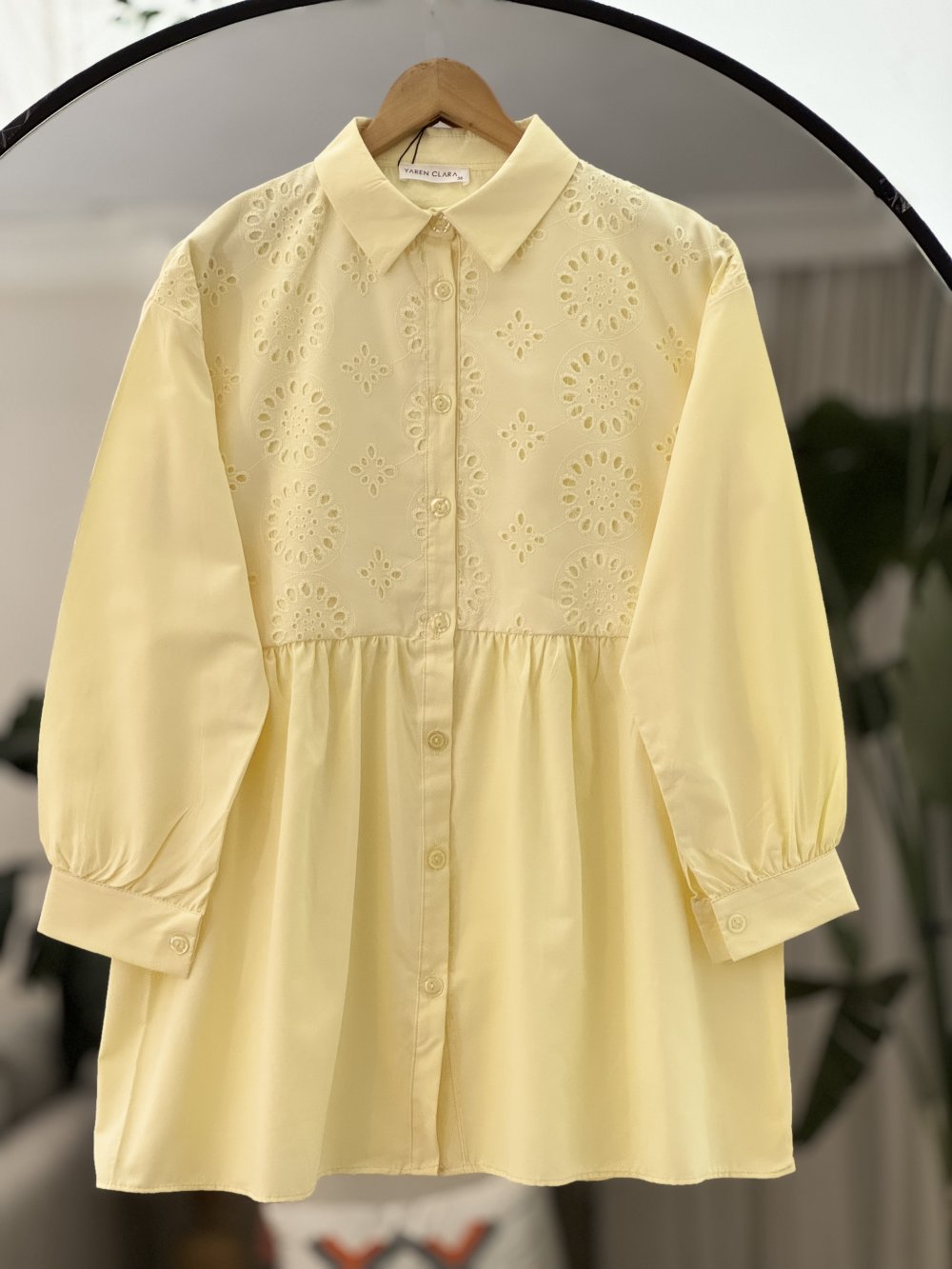Dantel Detaylı Tunik Gömlek Sarı YR30539