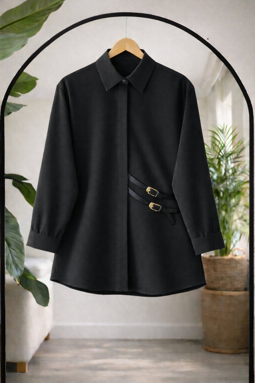 Deri Kemerli Gömlek Siyah DS2062