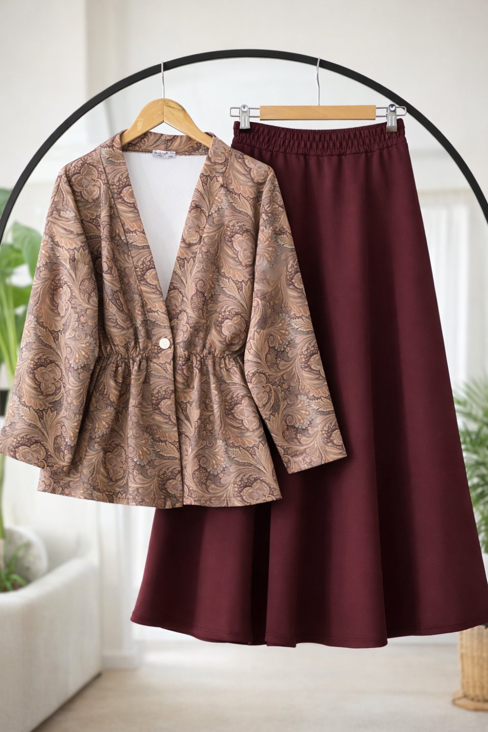 Desenli ceket Kiloş Etek Takım Bordo BK9538