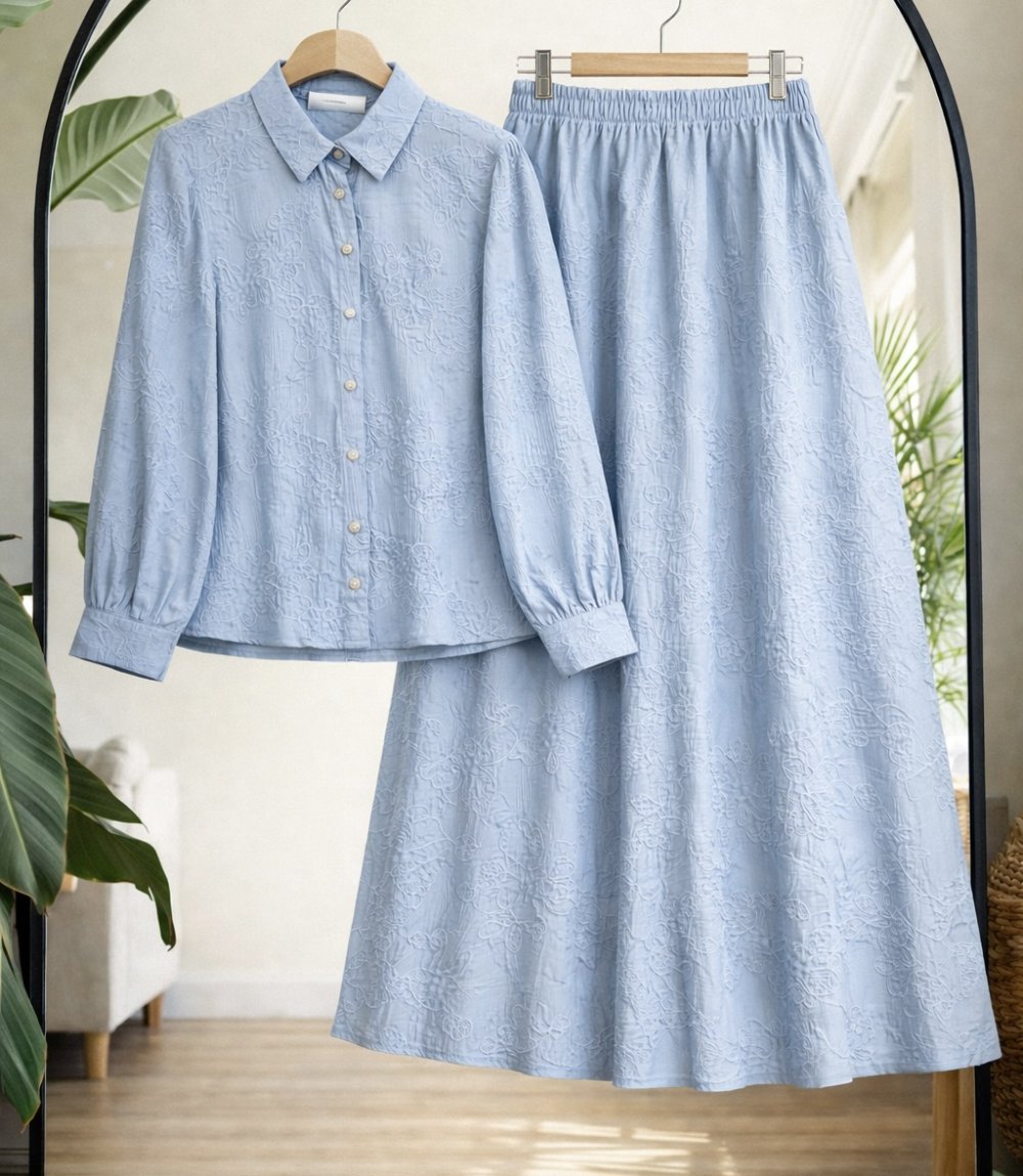 Desenli jakarlı etek gömlek takım Bebemavi UMS50346