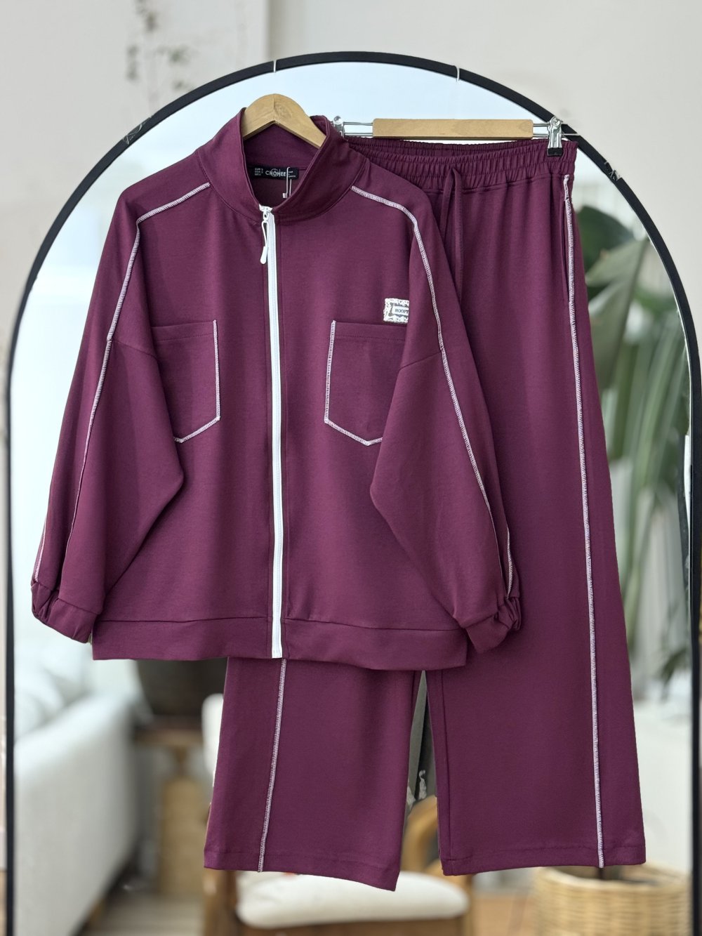 Dikiş Detaylı fermuarlı Oysh Takım Mürdüm NW6061