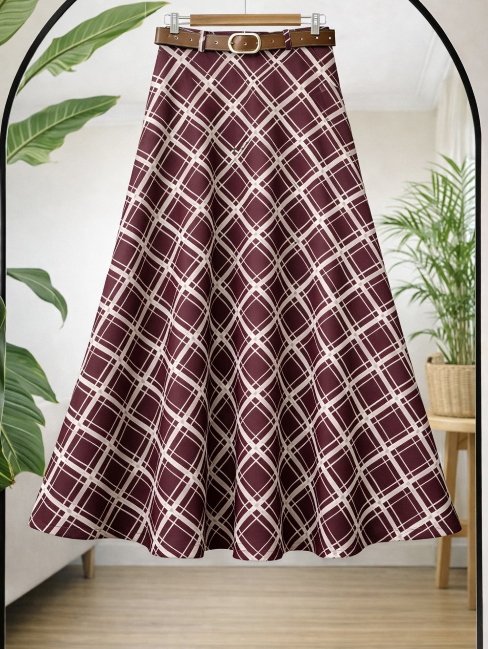 Ekoseli kemerli Kiloş Etek Bordo TB8050