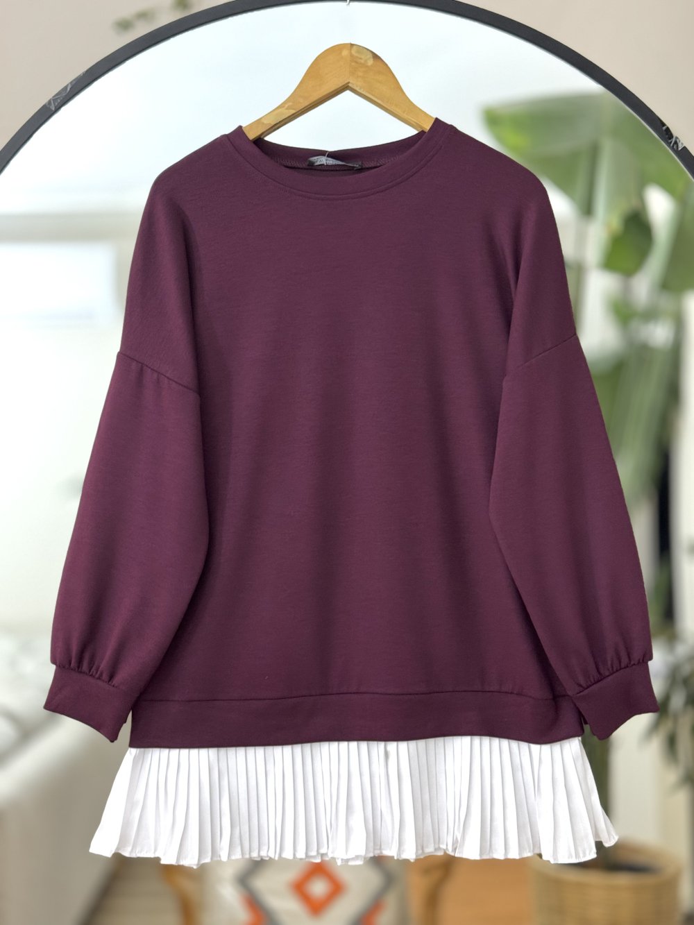 Etek Ucu Pile Detaylı Oyso Tunik Bordo NW6059