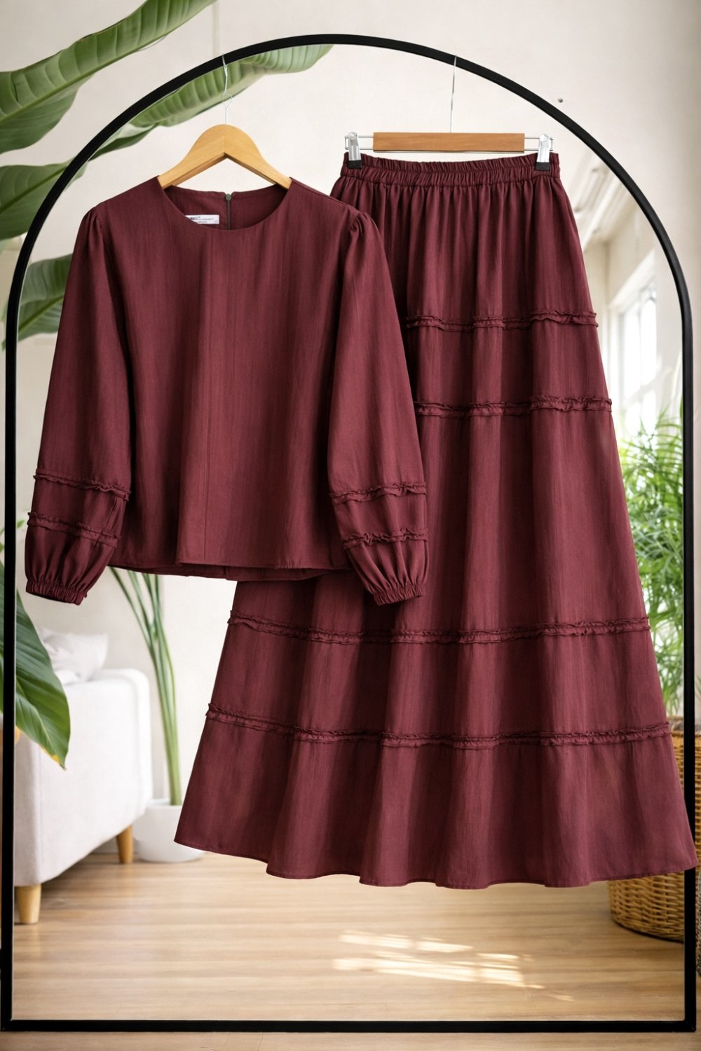 Etek ve kol fırfırlı Takım Bordo UMS50342