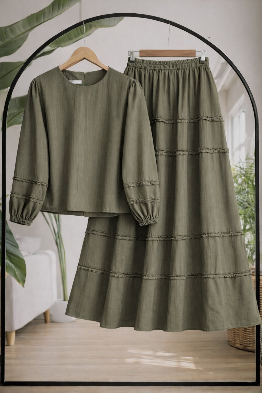 Etek ve kol fırfırlı Takım Yeşil UMS50342