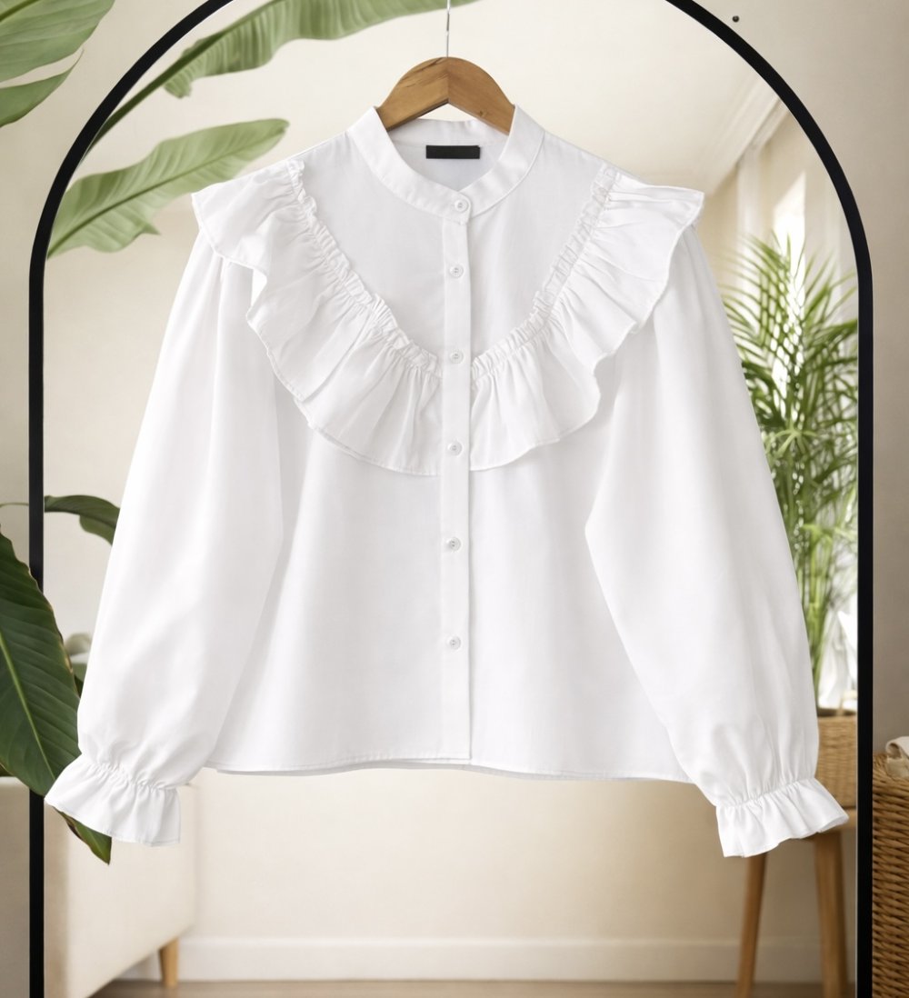 Fırfırlı Kısa gömlek Beyaz SLT8094