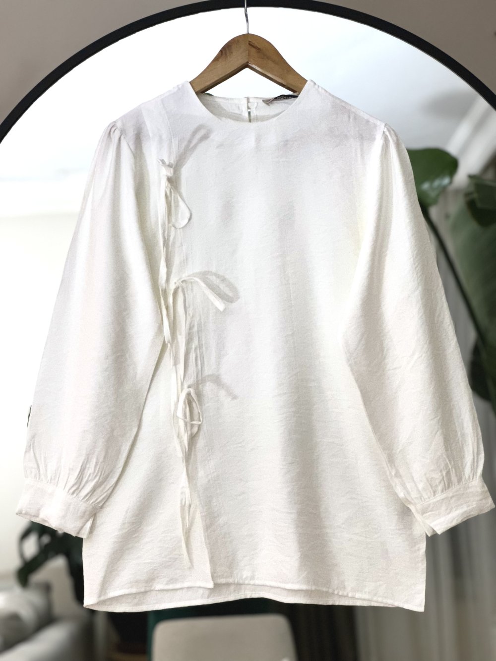 Fiyonk Detaylı Tunik Beyaz DST2036