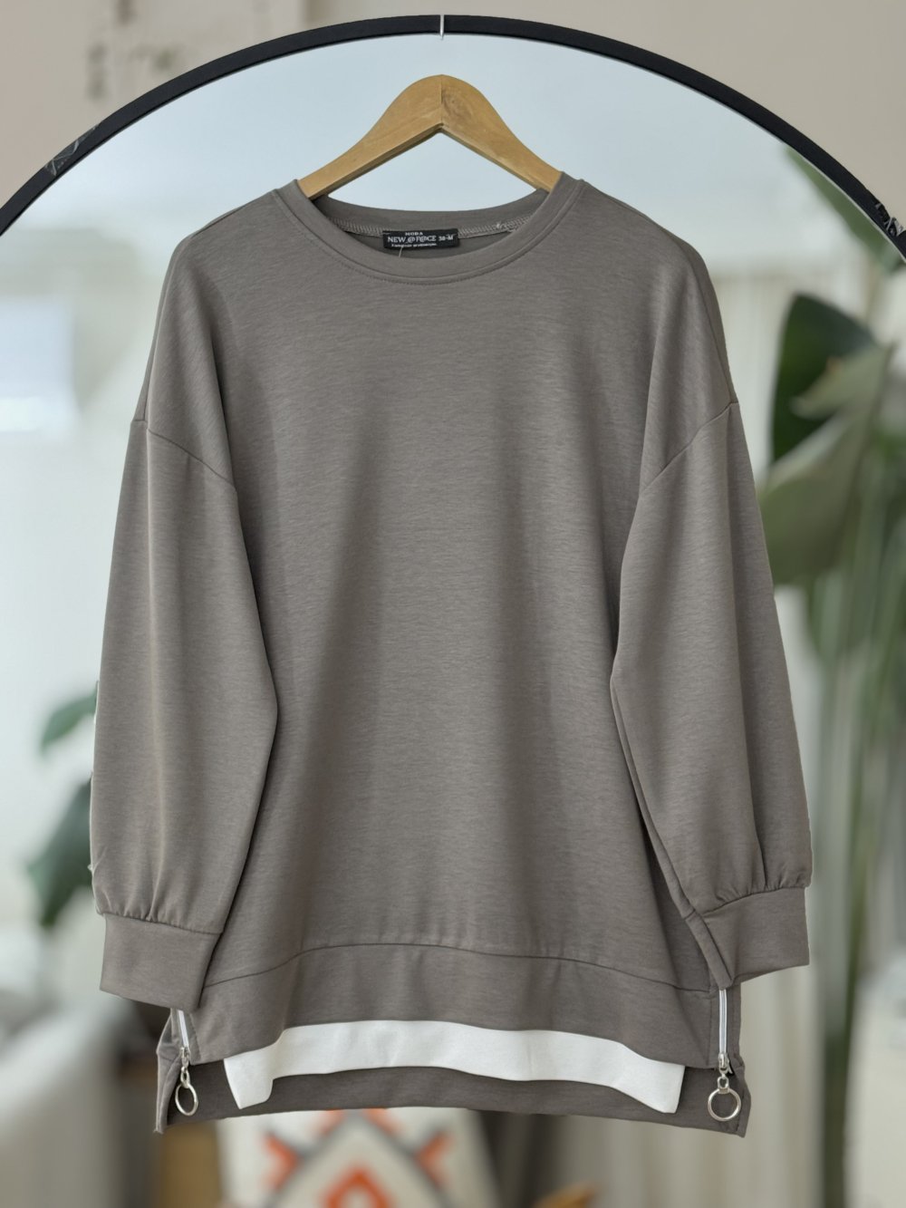 Garnili yanlardan fermuarlı Oysh Tunik Vizon NW6060