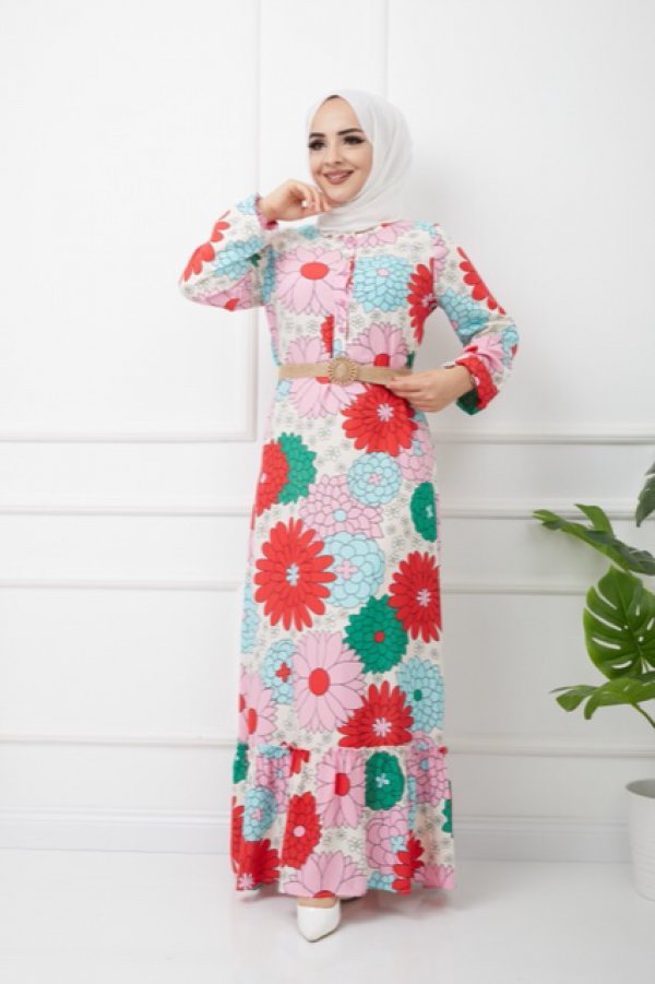 Hasır kemerli viskon kumaş elbise Boy 140 cm Beden 1 (36-38) Beden 2(40) Beden 3(42-44) Beden 4(42-44)
