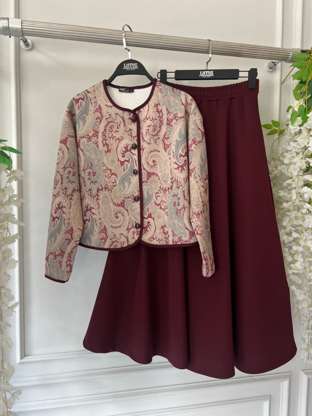 Kapitone ceketli etnik desen Takım Bordo UMS50318
