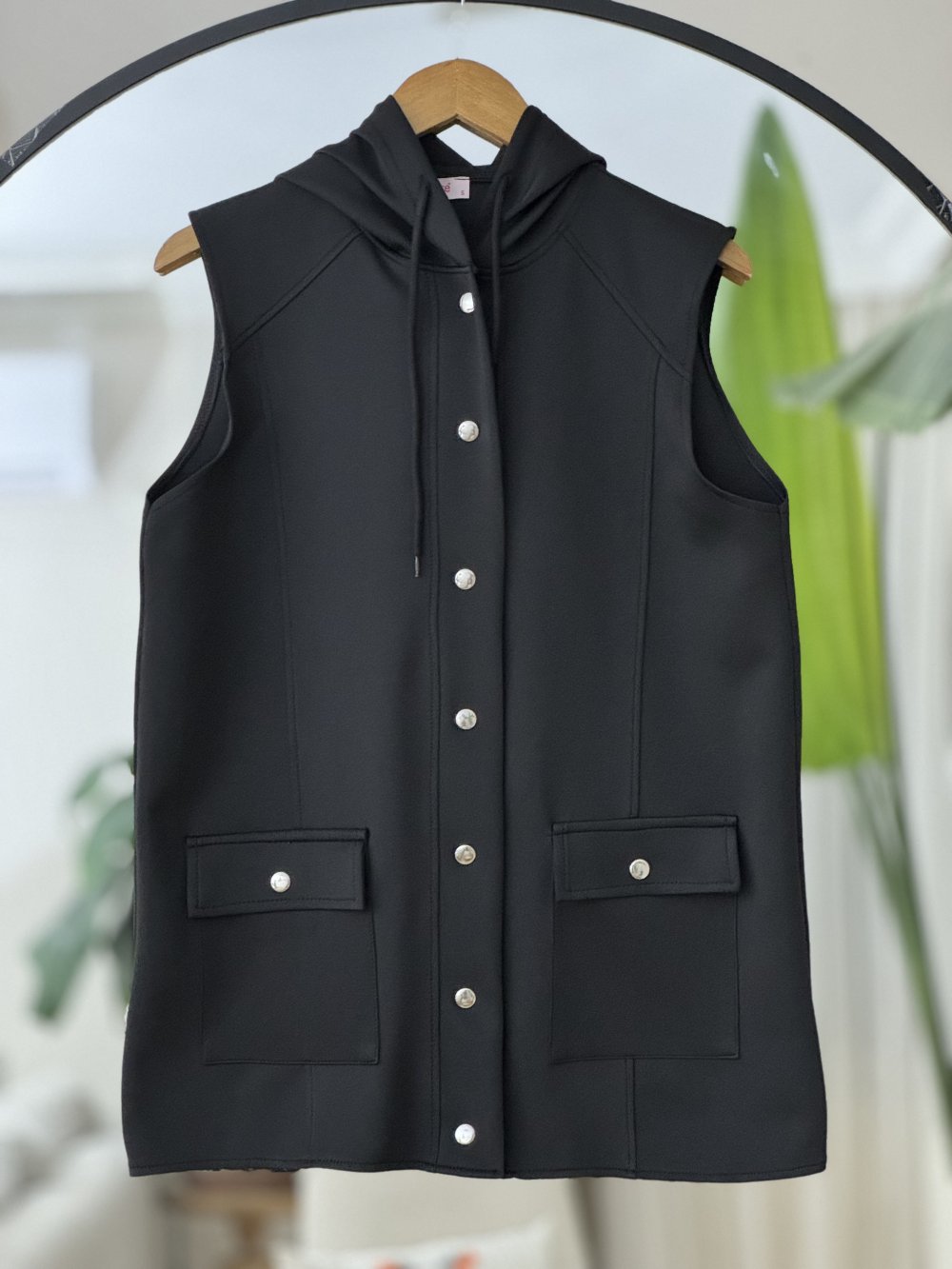 Kapşonlu cepli citcitli Yelek Siyah BK9519