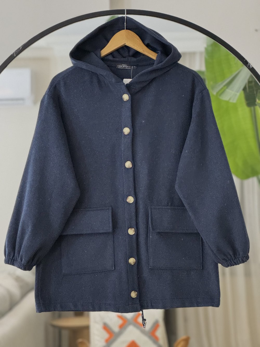 Kapşonlu cepli Kaşe kap Lacivert NW6064