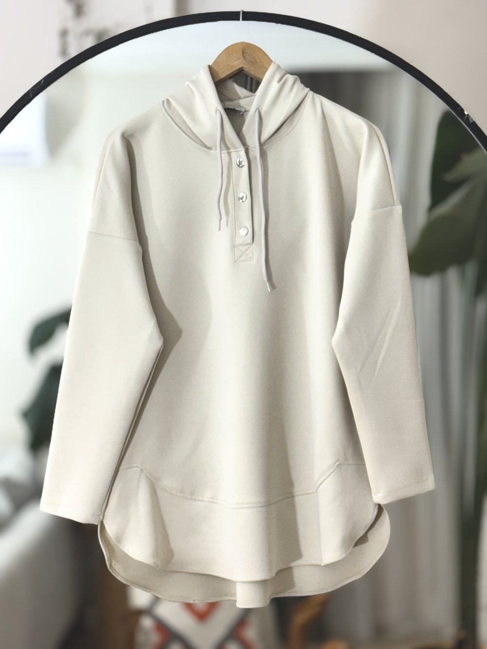 Kapşonlu Düğmeli Tunik Bej BK9513