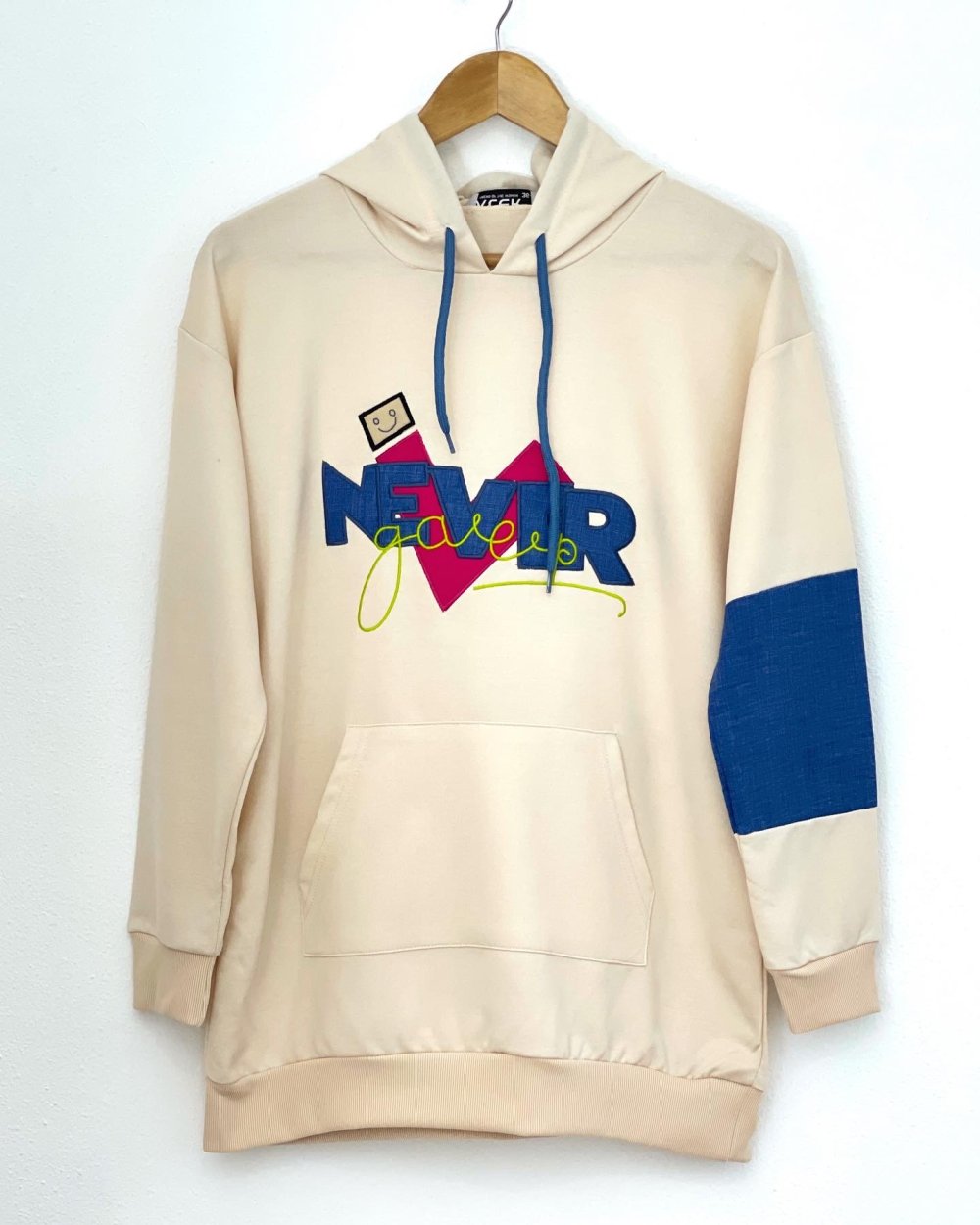 Kapşonlu kanguru cepli tunik Bej ALR30169