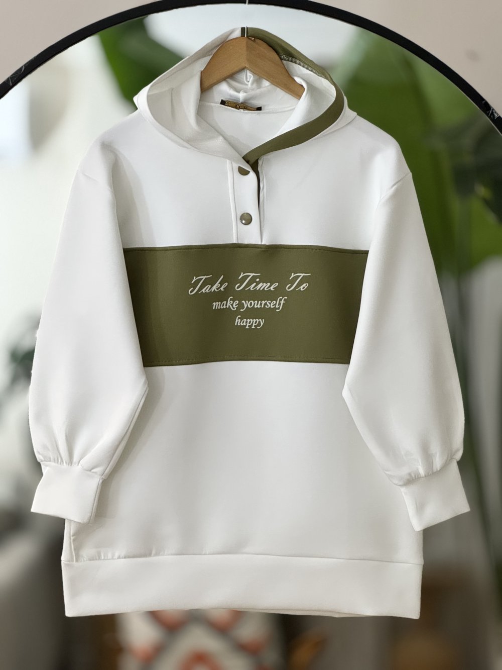 Kapşonlu ön ve kopşon siyah şeritli Tunik yeşil TCN40128