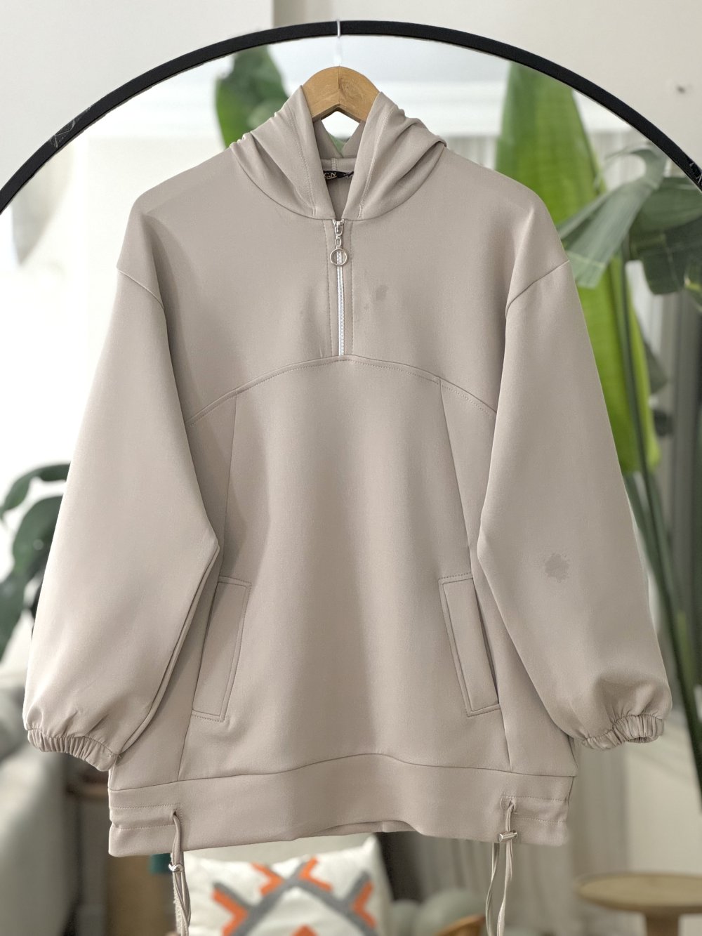 Kapşonlu Yarım fermuarlı ipli Tunik Vizon TCN40120