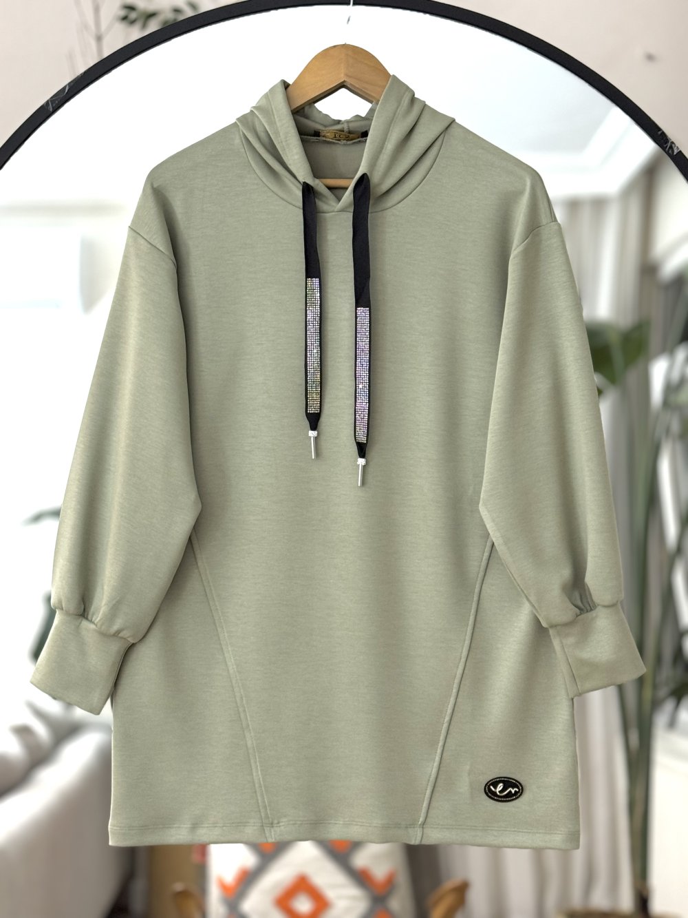 Kapüşonlu armalı oyso tunik haki yeşil TCN40108