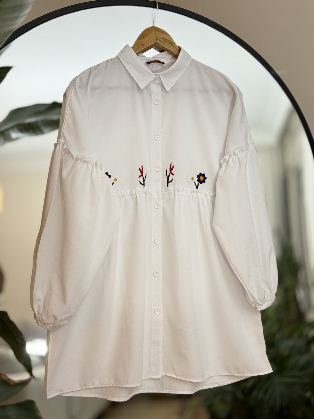 Karpuz kol ön nakış işelemeli tunik Beyaz ASM30252