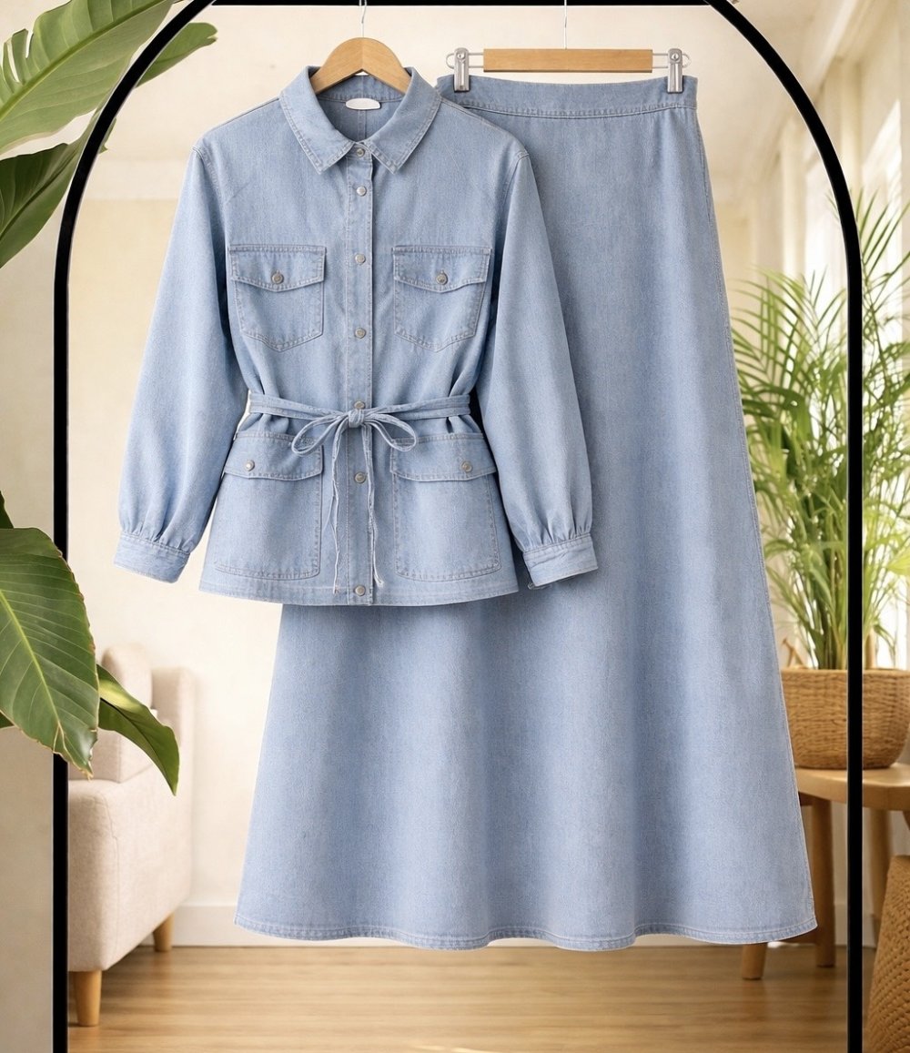 Kemerli cepli etekli Kot takım Acıkmavi YR8090