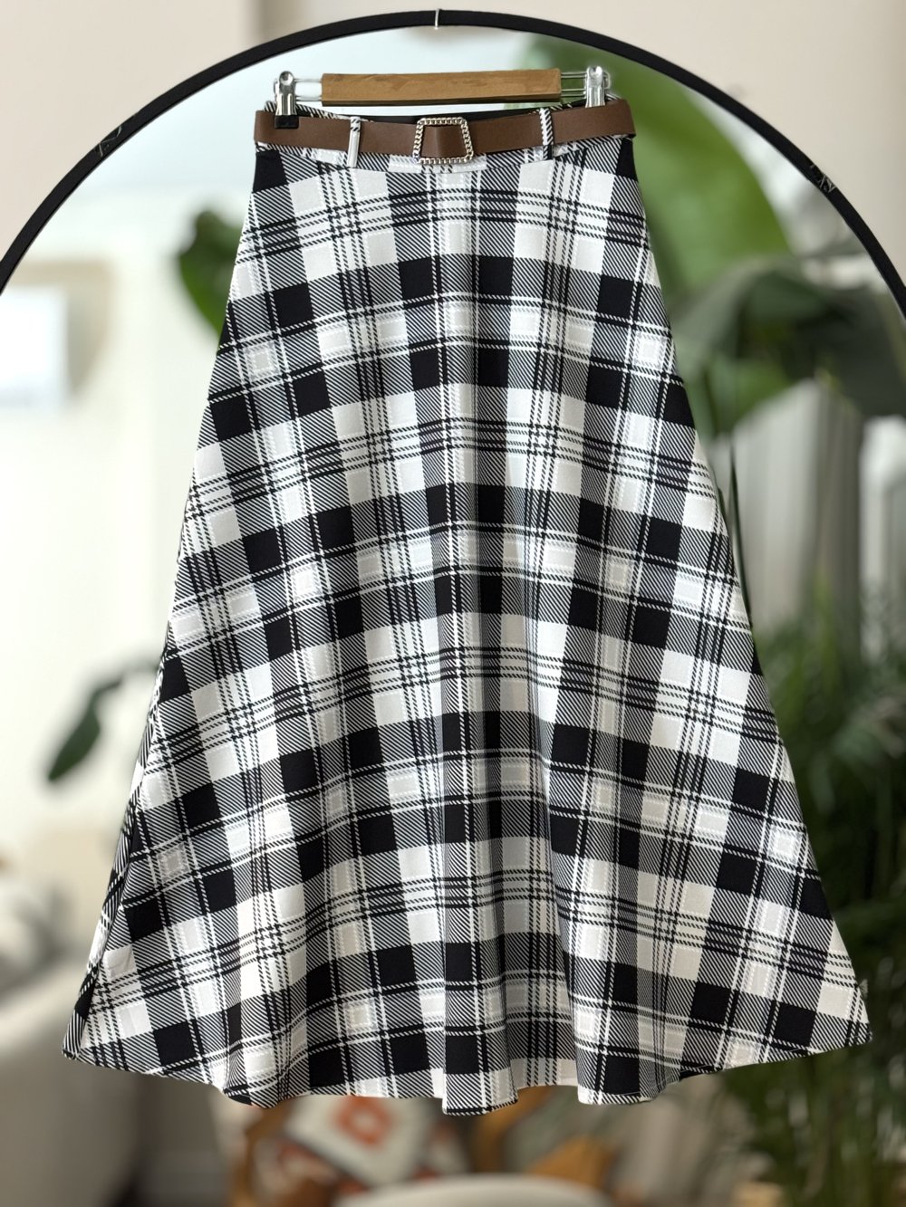 Kemerli ekoseli kiloş etek Siyah TB8047