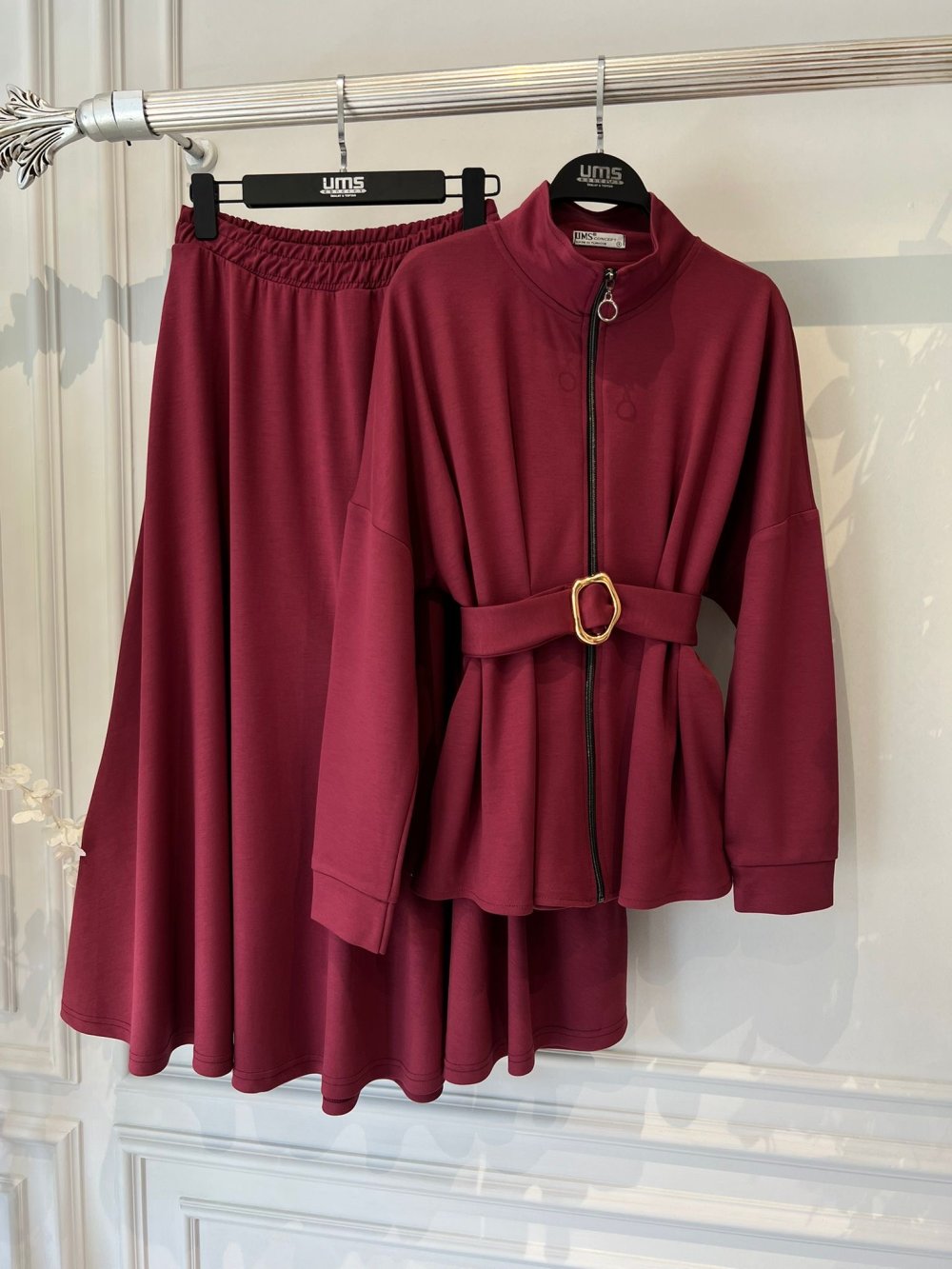 Kemerli fermuarlı etekli Takım Bordo UMS50315