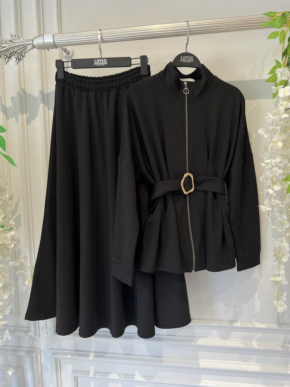 Kemerli fermuarlı etekli Takım Siyah UMS50315